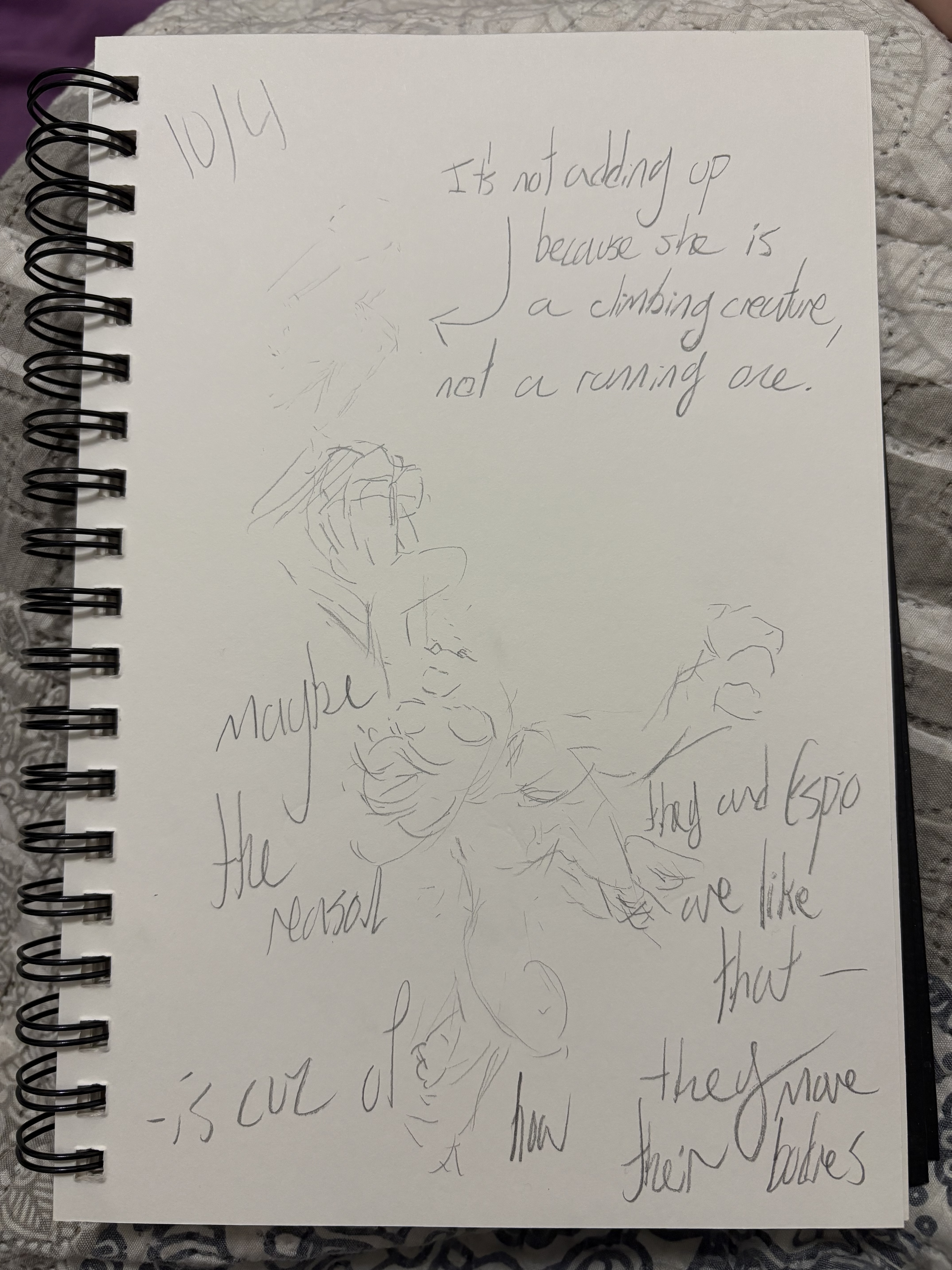 (It's not adding up because she is a climbing creature, not a running one.)